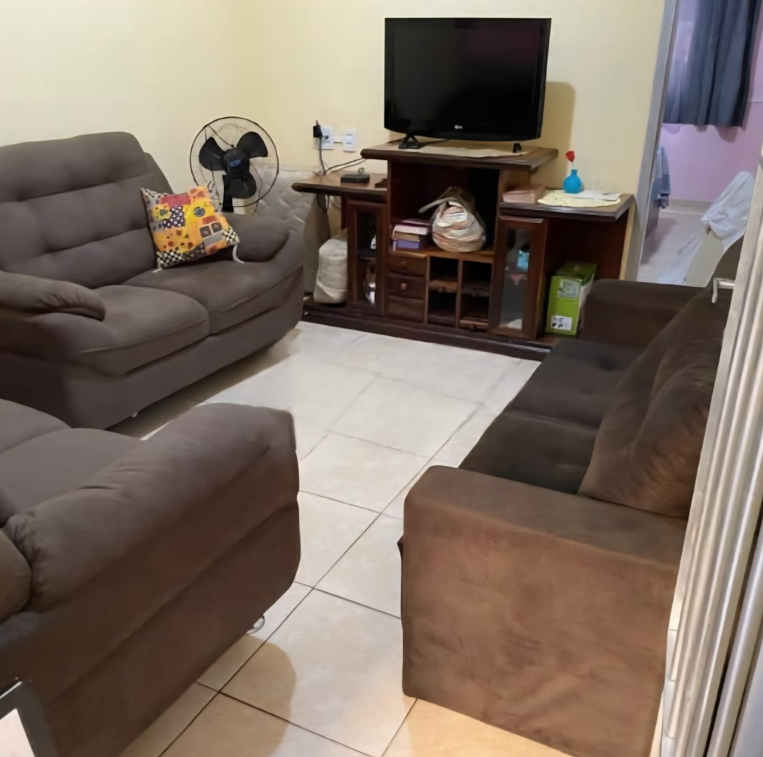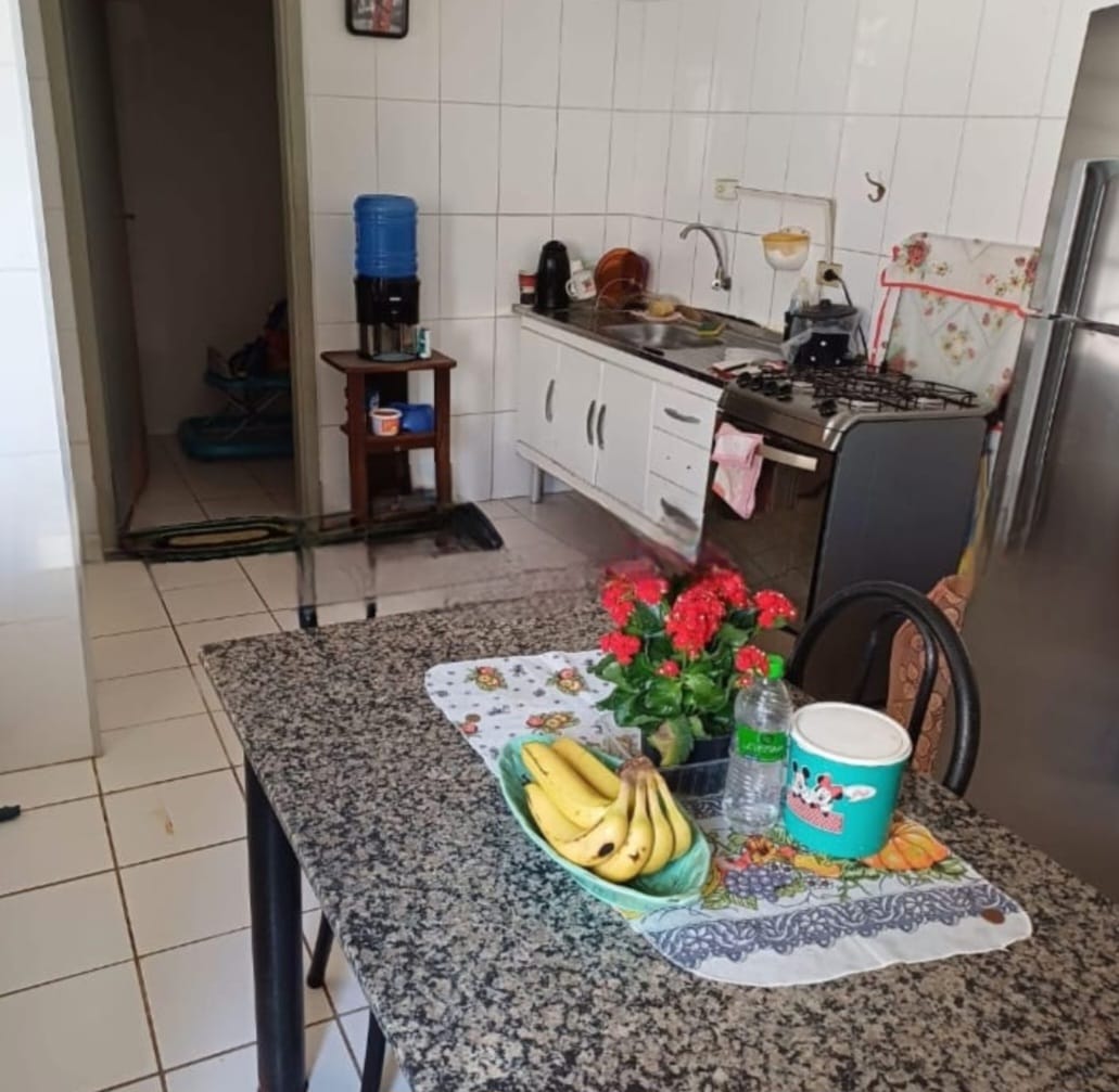 Casa de fundo com 2 dormitórios, sala, cozinha, 2 banheiros, área de serviço coberta e amplo quintal.