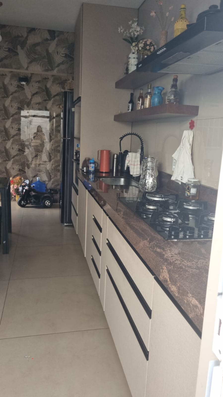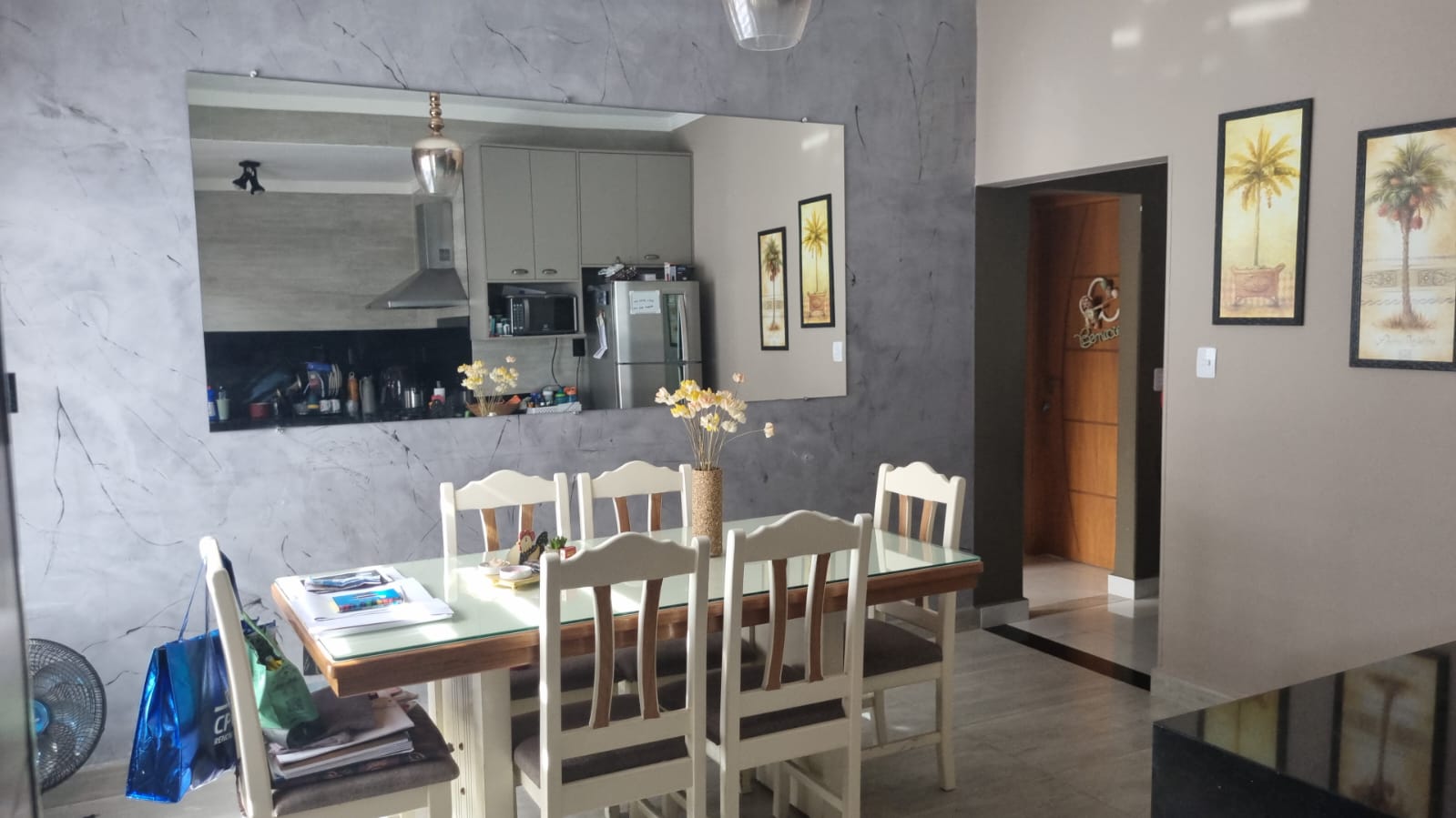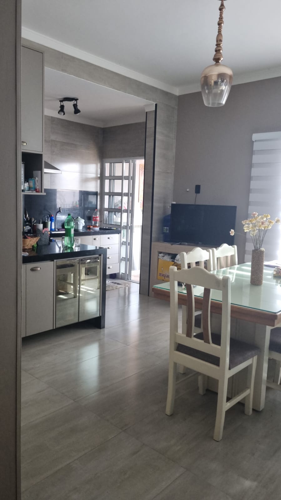 Casa de frente, com 2 dormitórios com ae, sendo uma suite, sala de estar, cozinha planejada, copa, lavanderia, piscina, churrasqueira, garagem para até 3.