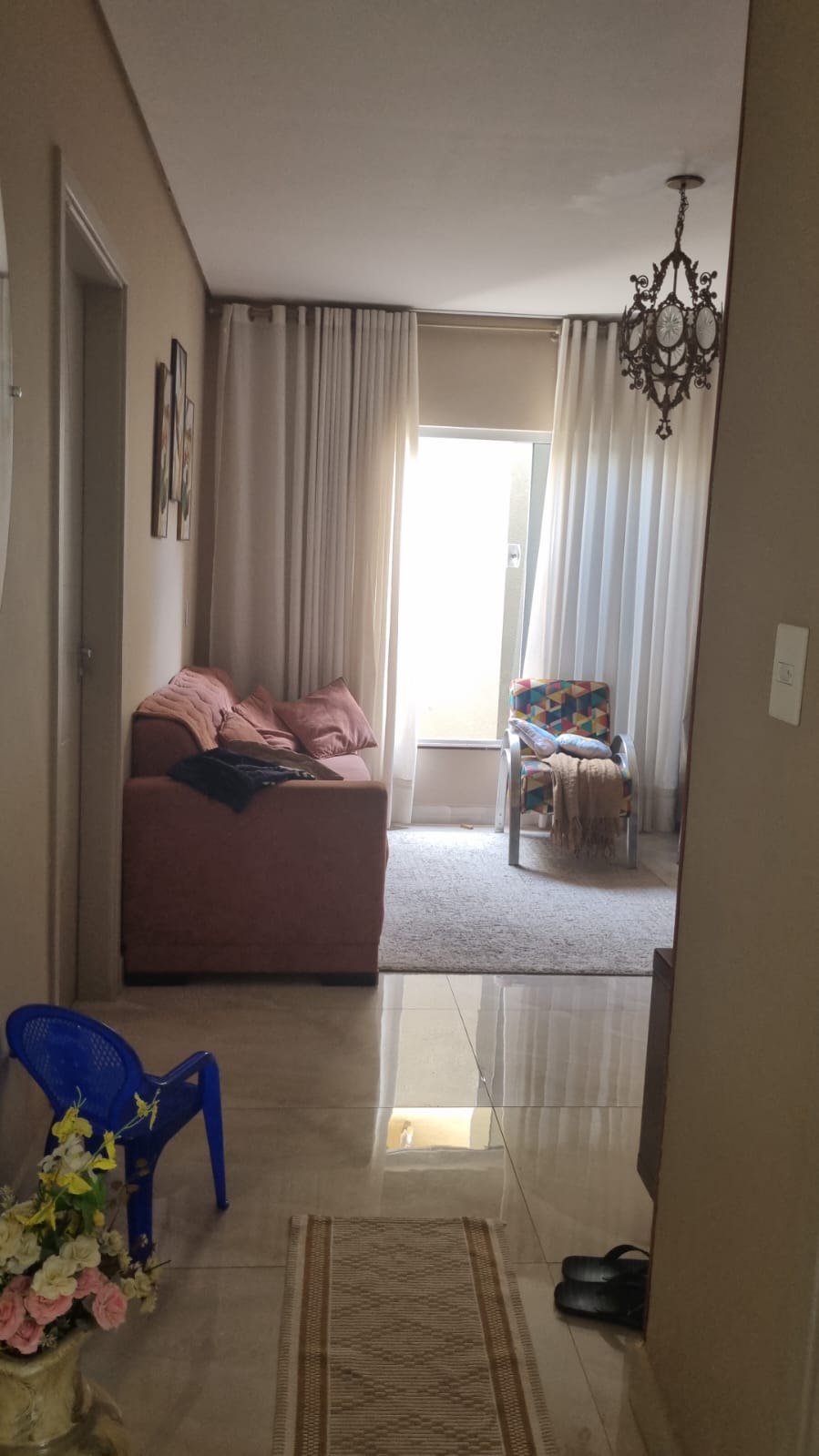 Casa de fundo com 2 dormitórios, sendo uma suite, sala de estar, cozinha, área de serviço.